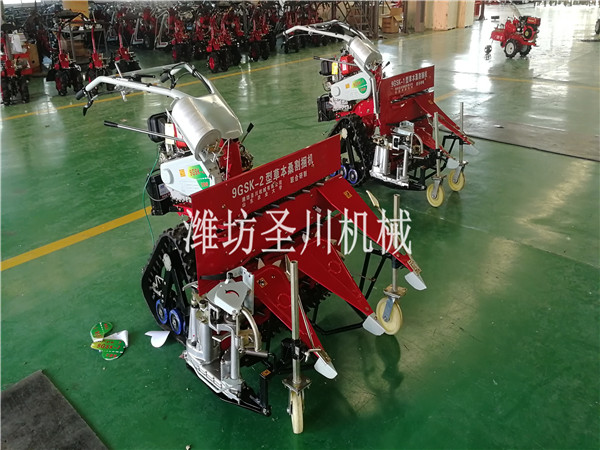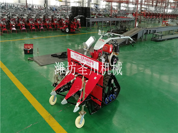 該產品由山東農業大學和濰坊圣川機械有限公司在原有稻麥割捆機的基礎上開發的專門應用于草本桑收獲的機械(擁有多項發明設計專利,仿冒必究)。草本桑是指草本化栽培、無干、一年可收割多次的桑樹。本系列草本桑收割機是一種手扶式草本桑收割機械,是目前國內唯一的一款專門開發用來收割草本桑的機械。具有機體積小、重量輕,機動性能靈活、操作簡單省力、割茬高度可調、履帶內距可調等優點,該機可廣泛用于平原、丘陵、坡地、窄小地塊作等不同地形桑園內草本桑的一年多次收割,收割后的草本桑既可用于養蠶,也可粉碎后用于畜禽飼料。